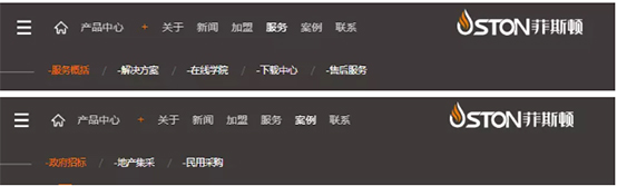 導航欄部分主要分為產品中心,關于企業,新聞,加盟,服務,案例,聯系等七大板塊。每個版塊又對版塊進行細分,分類清晰,檢索明確。