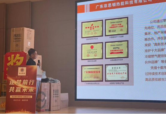 作為本次盛會唯一的壁掛爐品牌企業,廣東菲思頓熱能科技有限公司深度參與了本次大會。包括作為協辦單位、出臺渠道促銷政策、會議贊助等多種形式。一方面彰顯了菲思盾壁掛爐大力拓展當地渠道快速發展零售的決心,另一方面也希望借以大會這個高質量平臺,聯同振東商務有限公司以及多家暖通產品行業翹楚實現信息互通、價值共創、產銷共贏的目的,加快當地壁掛爐產品整體銷售推廣步伐,了解并完善本地壁掛爐銷售服務體系,進一步在當地消費群體建立菲思盾壁掛爐高品質優服務的企業品牌形象。