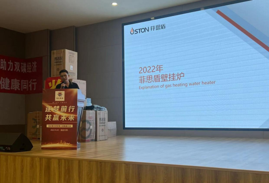 會上,菲思盾壁掛爐率先為在場與會人員詳細介紹我司整體發展歷程以及多項壁掛爐產品研發技術優勢,結合當地市場銷售的經驗總結及多方面建議,與現場多家經銷商代表及暖通企業進行深入探討交流,進一步加強與本土生產企業、商業企業、零售終端之間的商品信息交流、經營業務互動,鞏固菲思盾壁掛爐在當地暖通產品市場良好的整體形象,實現更多互惠互利的商務合作機會。