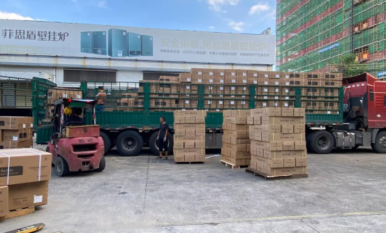 為抓住節前銷售旺季,加快銷售生產速度,滿足國內各個經銷區域緊張的貨源需求,菲思盾各部門同心協力,相互緊密配合,車間開足馬力生產,完成一批又一批高品質壁掛爐產品安排裝車出貨,前往陪伴每一位用戶度過一個舒適溫暖的冬季而努力著。