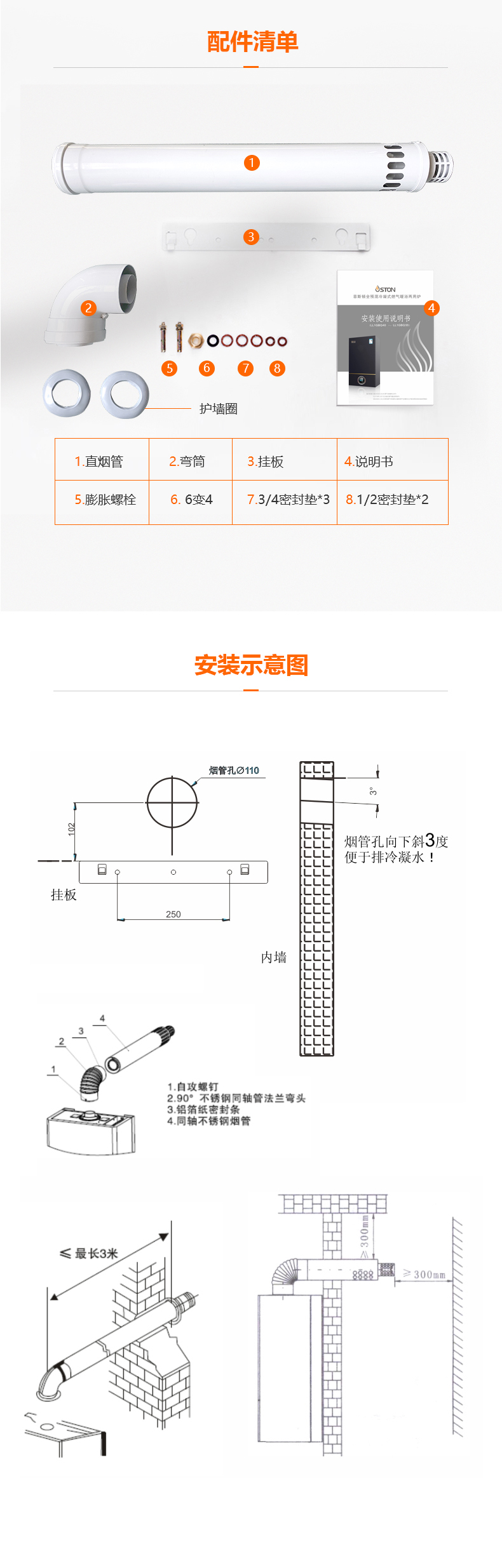 c:排煙管出風(fēng)口必須向下低3°~5°
