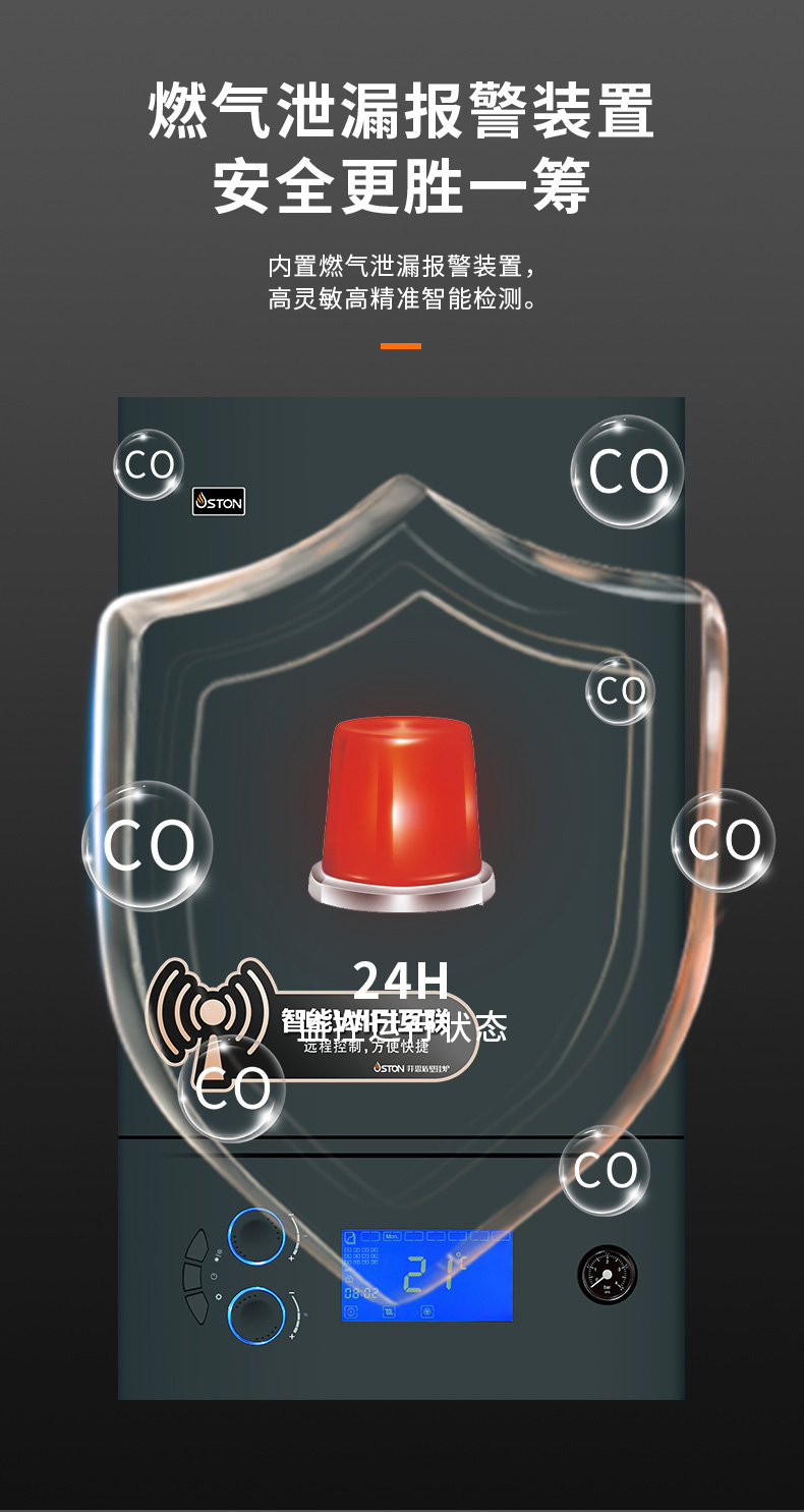 內置燃氣泄漏報警裝置,秒級預警,安全加倍。
