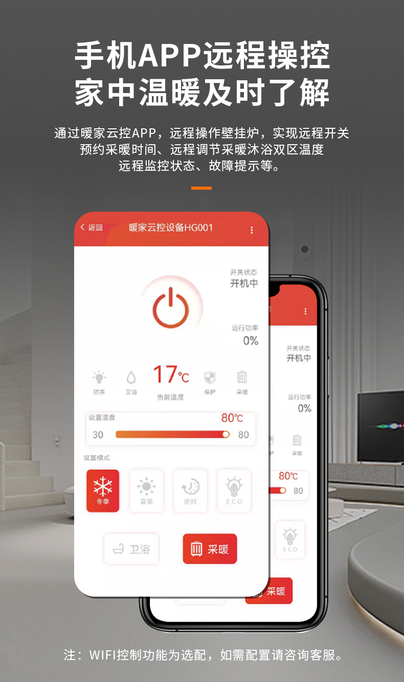 自定義八時段定溫采暖功能,采暖季比常規模式節省燃氣