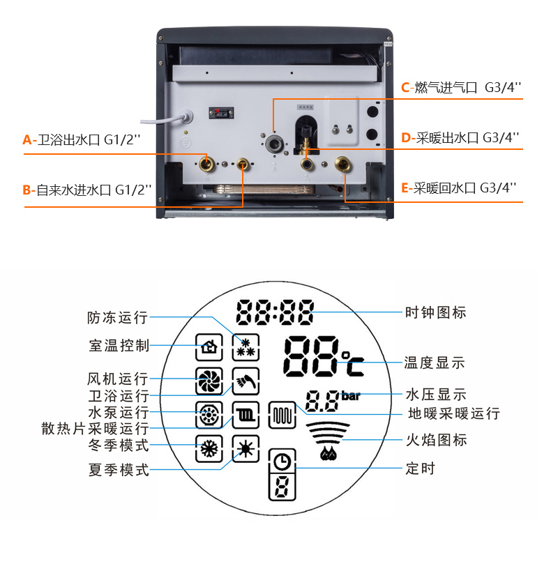 3.在可能結冰的情況下,必須保證壁掛爐的電源供應和燃氣正常打開,以便機器的防凍功能起作用。若斷電或斷氣會導致壁掛爐防凍功能失效。